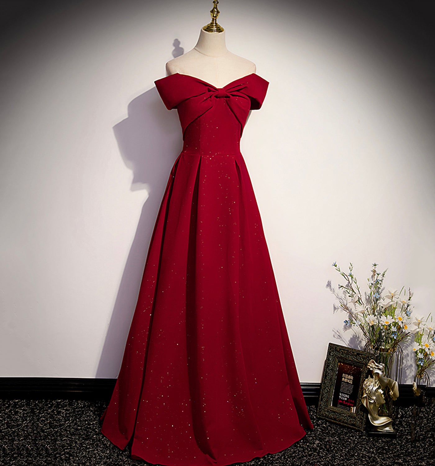 Robe de bal longue en satin bordeaux Robe de soirée trapèze