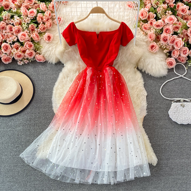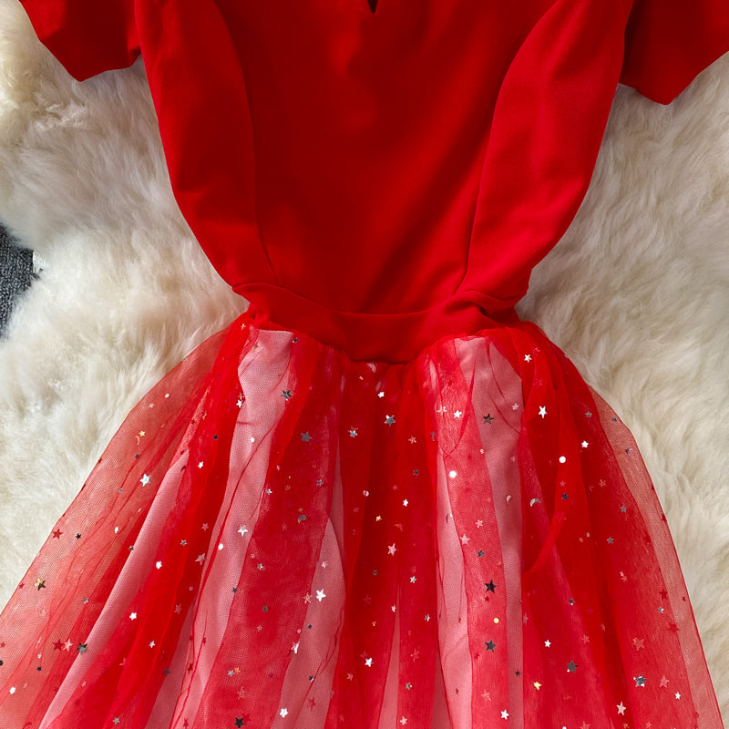 Robe courte en tulle à la mode, jolie robe trapèze 450