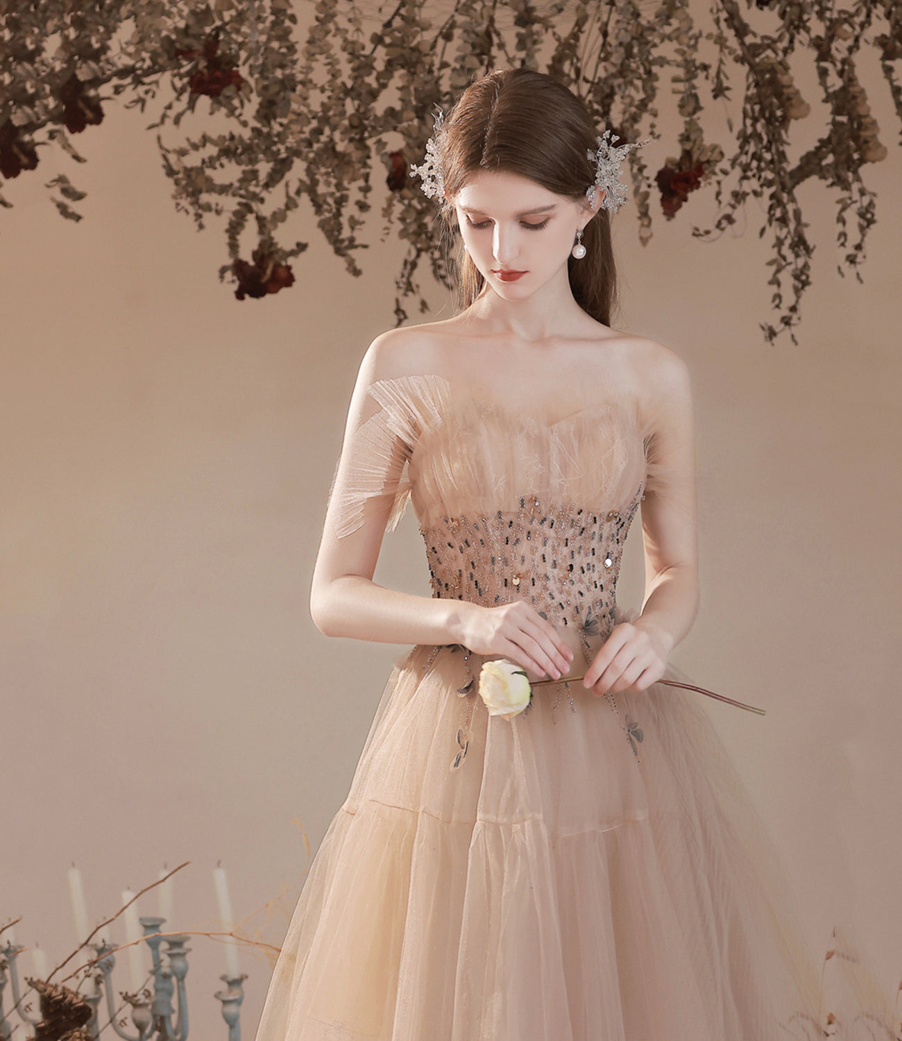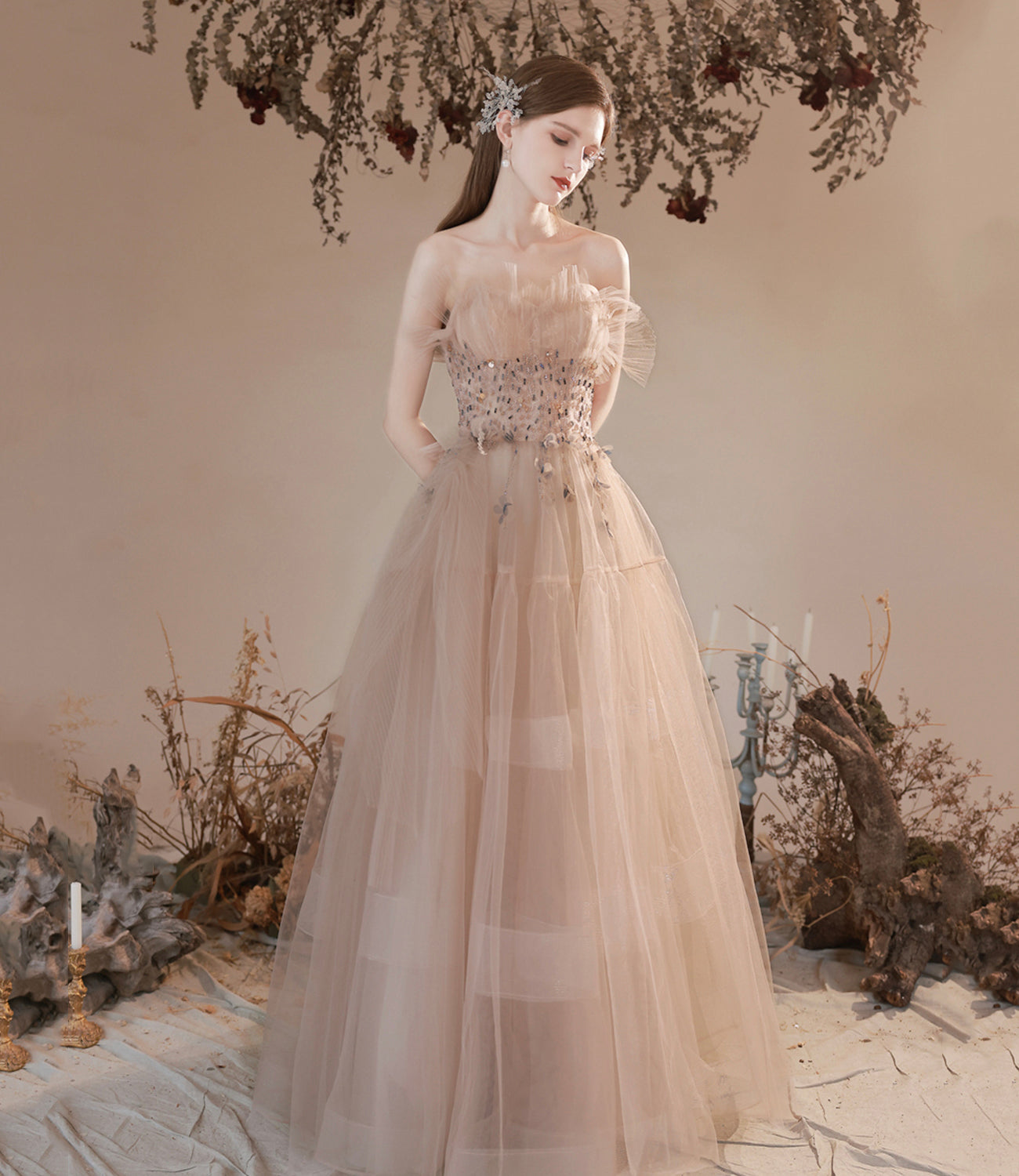 Robe de soirée longue en tulle avec perles mignonnes Robe de soirée trapèze 10396