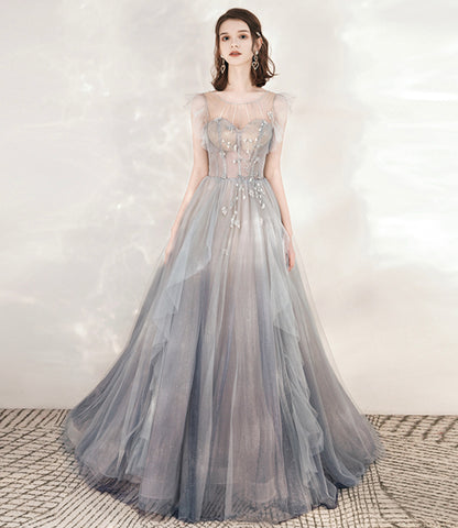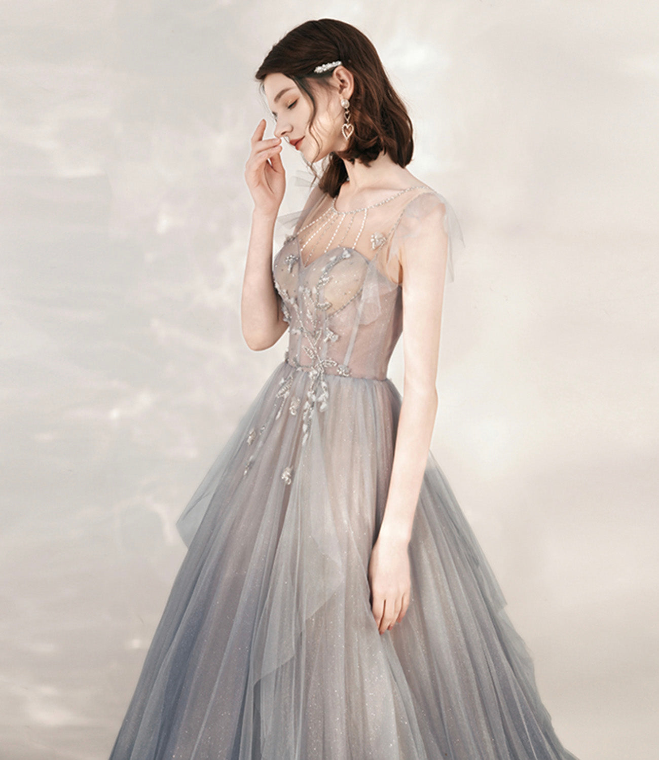 Robe de bal longue en tulle avec perles mignonnes Robe de soirée trapèze 10547