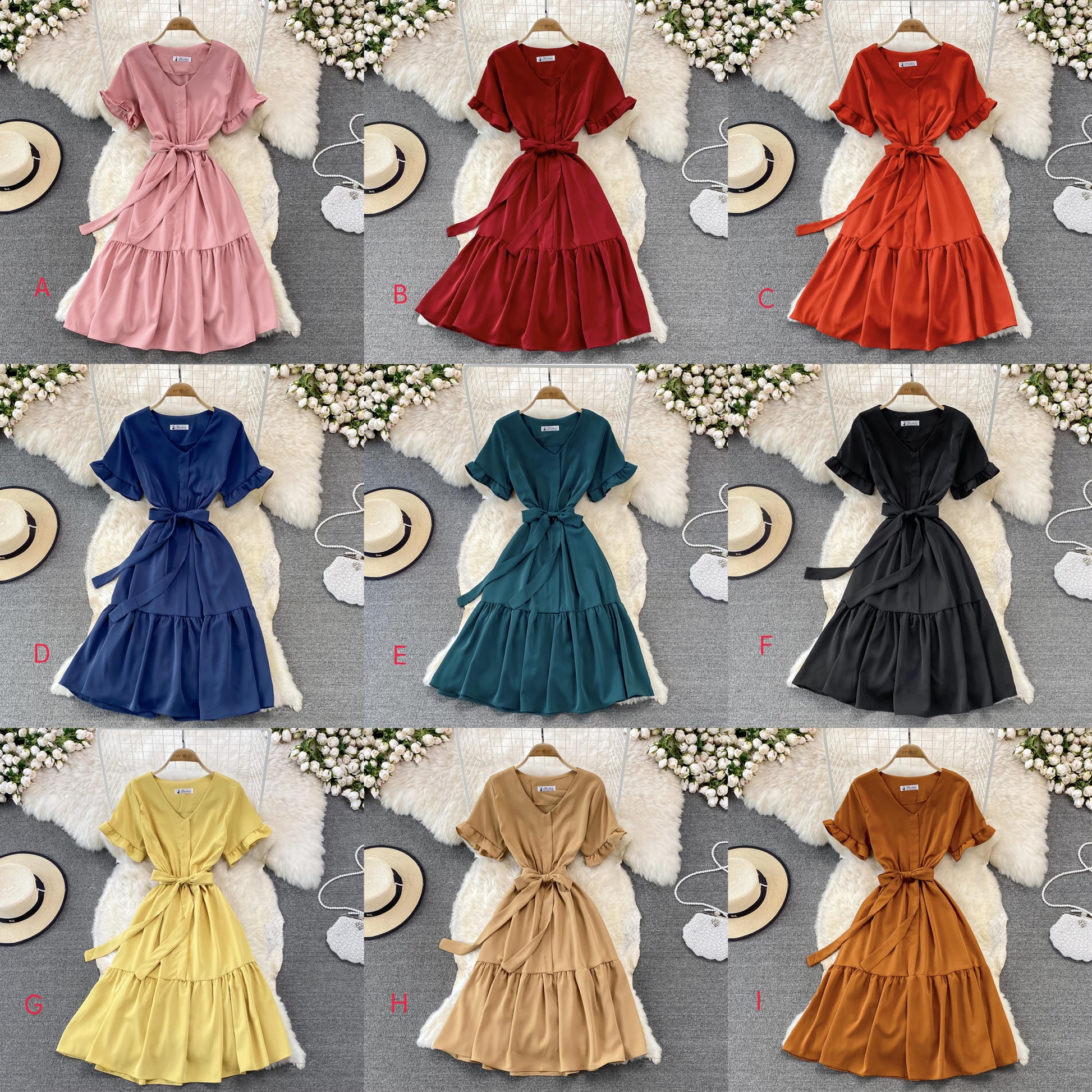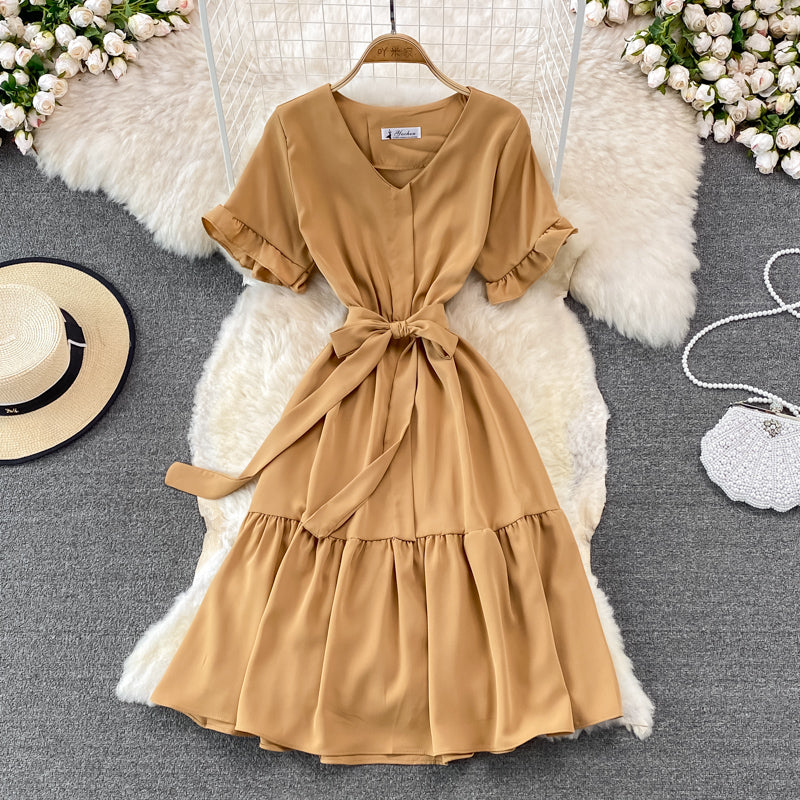 Robe courte mignonne à col en V Robe trapèze tendance 10901