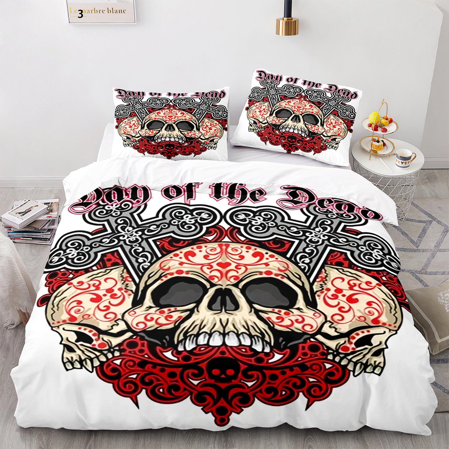 La housse de couette à motif clair, belle et imprimée de crâne apporte une mise à jour accrocheuse à votre chambre.