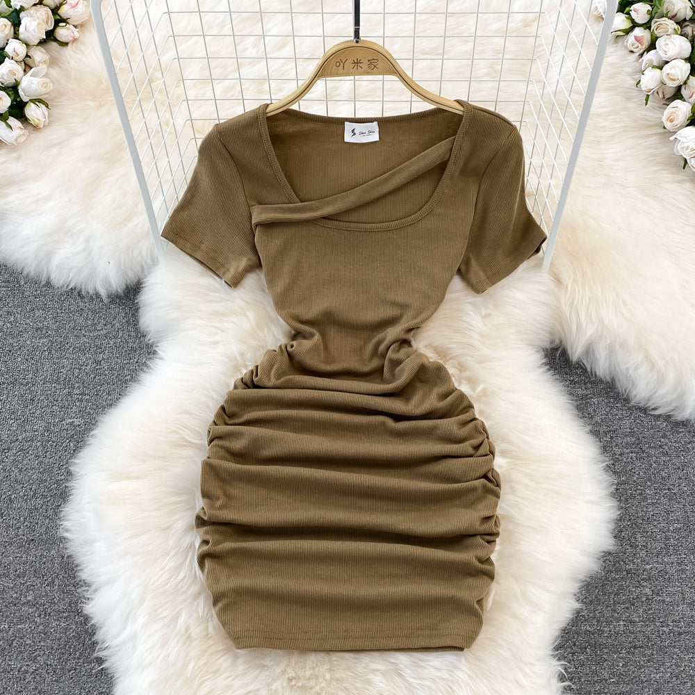 Robe portefeuille courte froissée à manches longues et coupe slim au niveau des hanches 11038