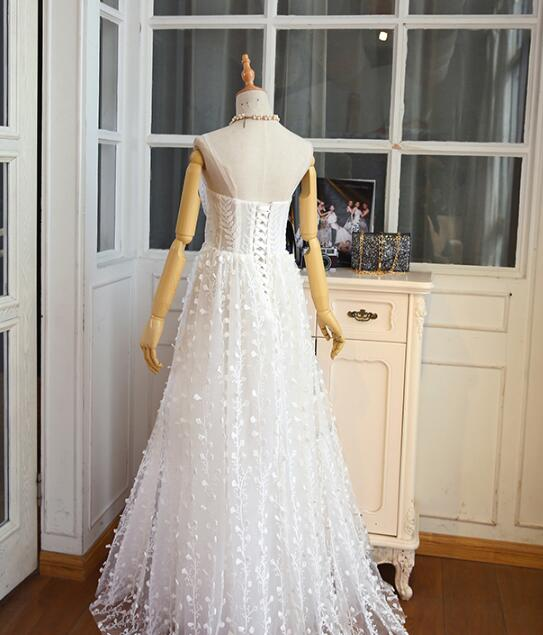 Robe de soirée longue élégante à bretelles blanches et à fleurs gh378