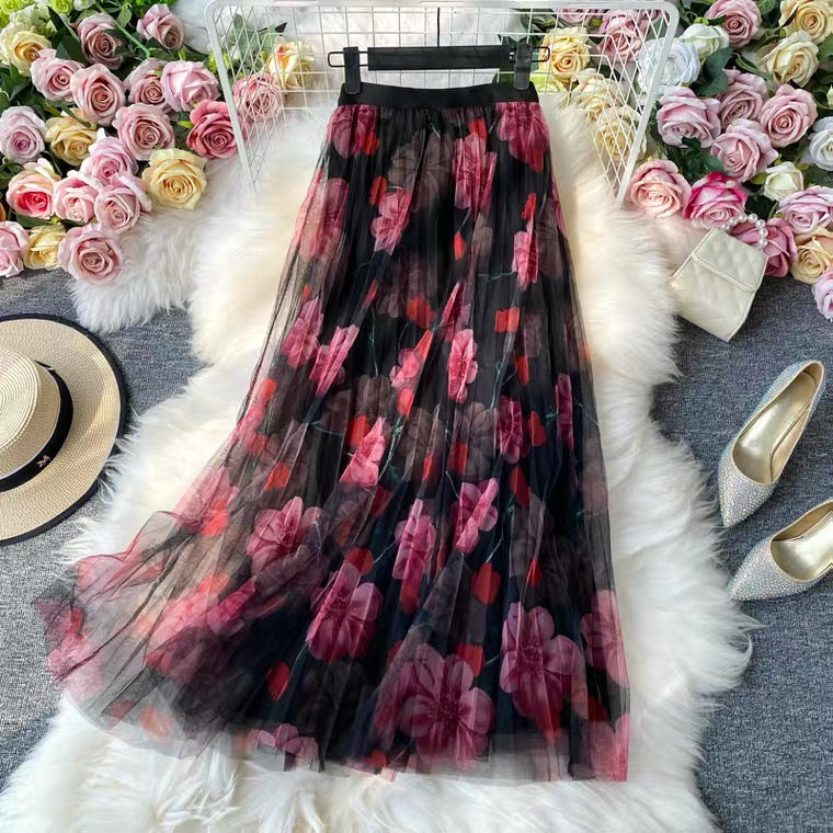 Jupe imprimée mode, jupe en gaze à taille élastique, nouveau style, jupe plissée taille haute, jupe trapèze jupe mi-longue 3523