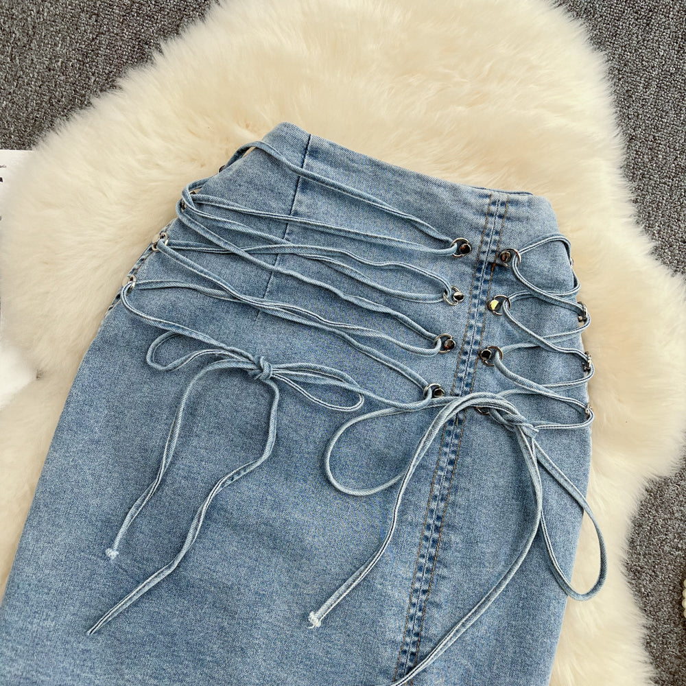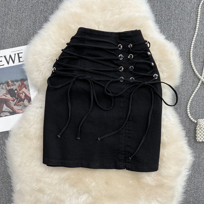 Jupe trapèze slim taille haute polyvalente Jupe courte portefeuille à la hanche 11273