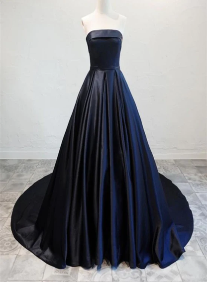 Robe de soirée longue en satin bleu marine, élégante robe de soirée bleu foncé gh134