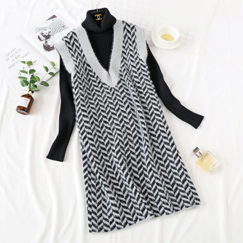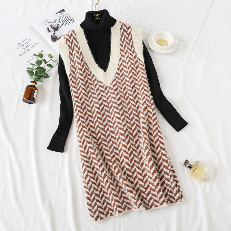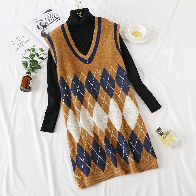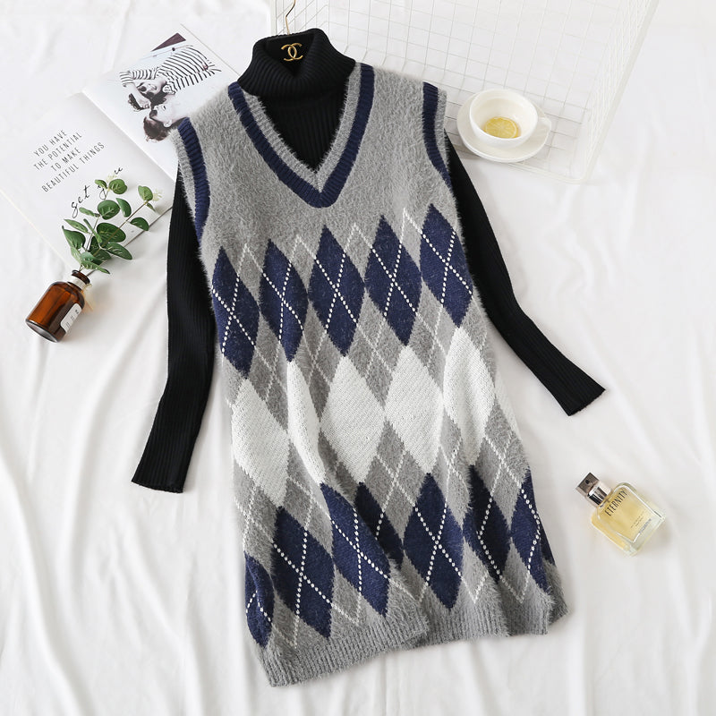 Gilet pull à carreaux en velours de vison rouge net gilet gilet robe 2474