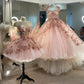 Robe de soirée courte rose magnifique et exquise avec appliques florales perlées, robe de bal, robe de soirée faite à la main avec fleurs, tenue d'anniversaire 14/16, robe de fête gh3307