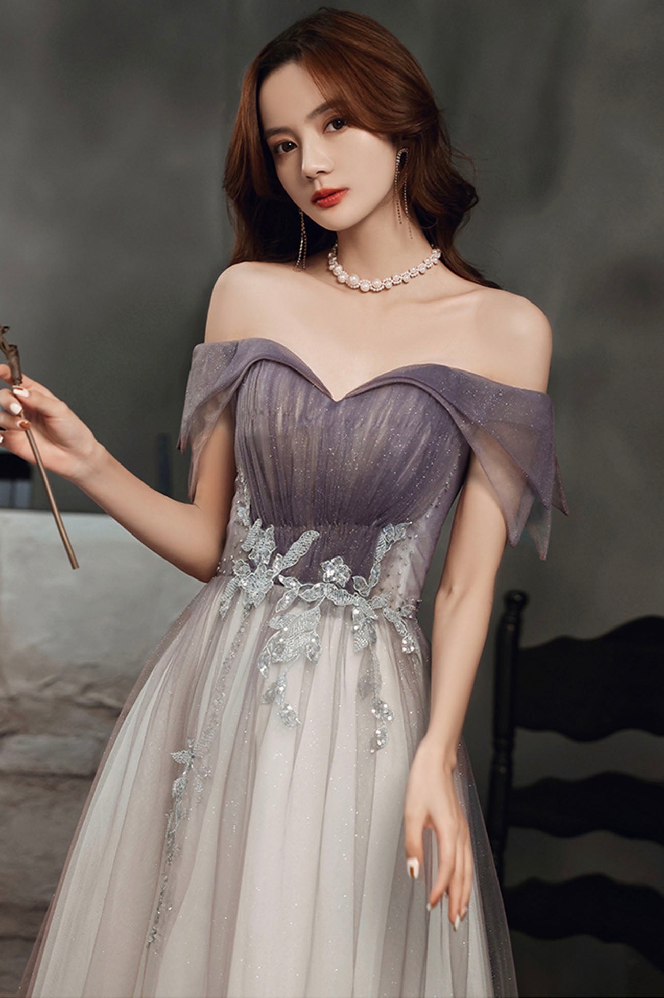 Robe de soirée longue en tulle violet à paillettes Robe de soirée trapèze 10644