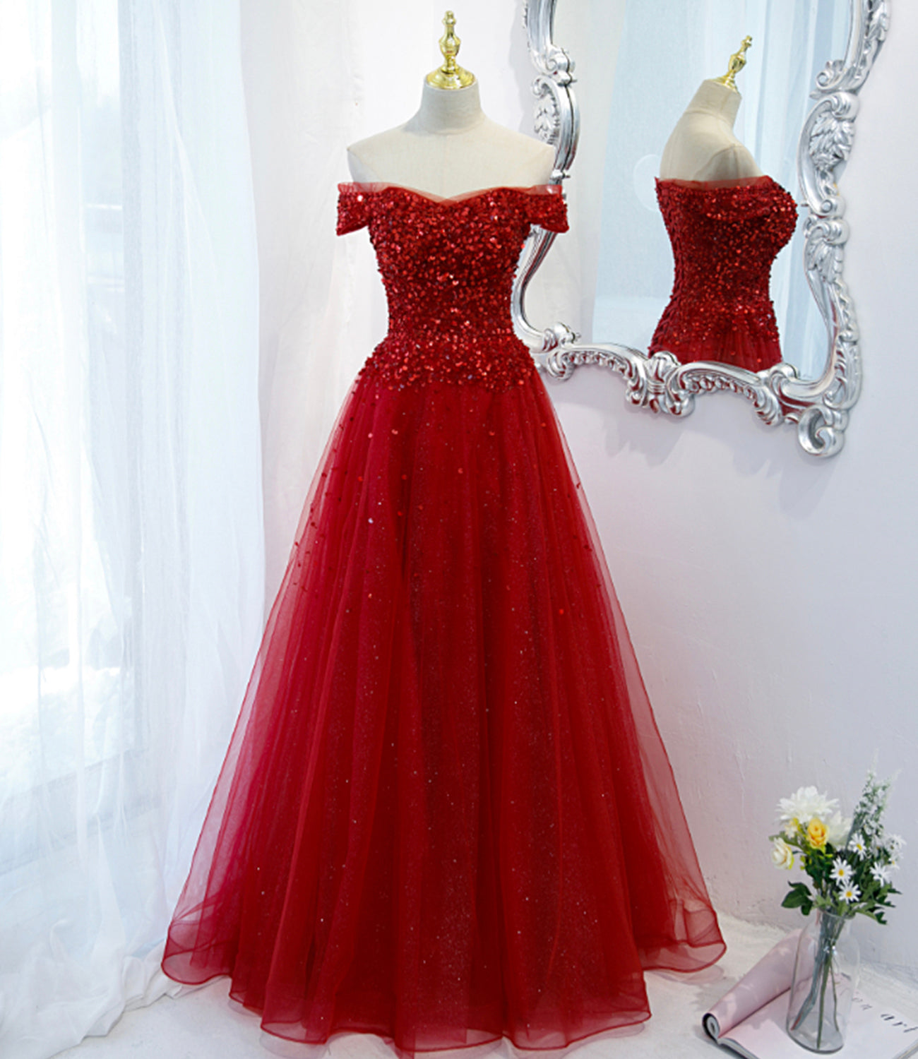 Robe de soirée longue en tulle rouge à paillettes 8987