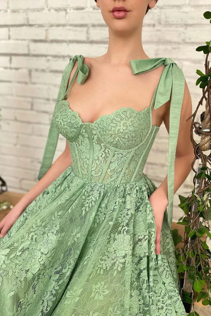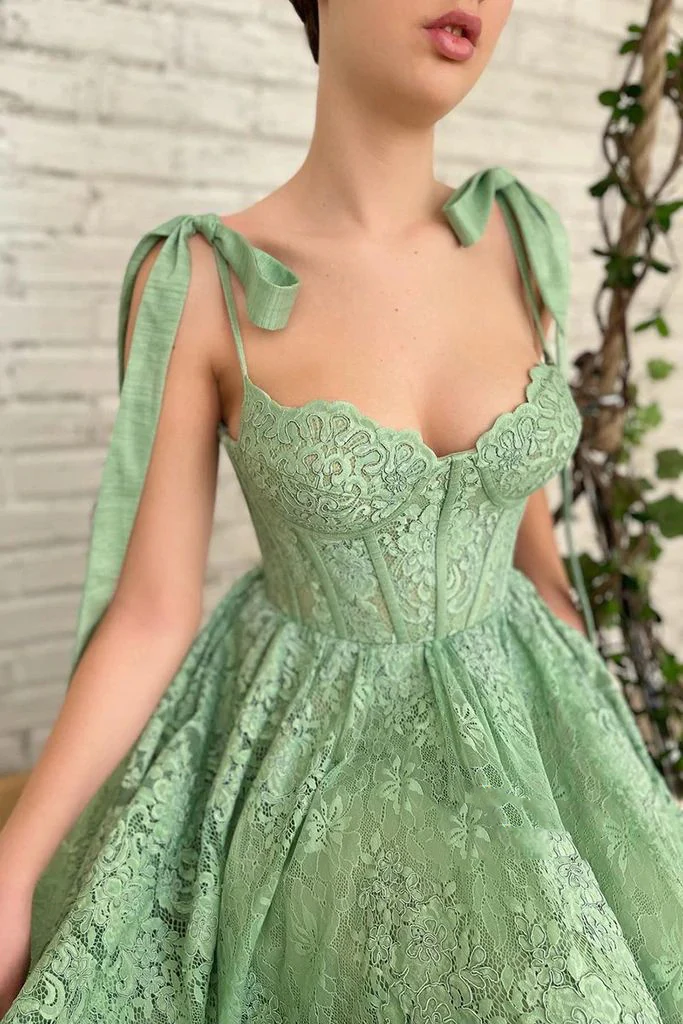 Robe de soirée courte/mi-longue en dentelle vert sauge, robe de bal, robe d'invitée de mariage, gh1821
