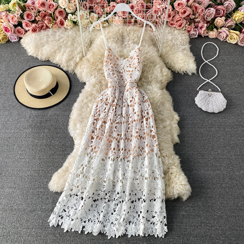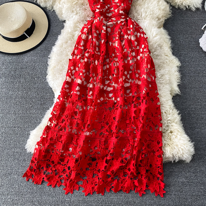 Robe en dentelle hydrosoluble évidée à une épaule 2801