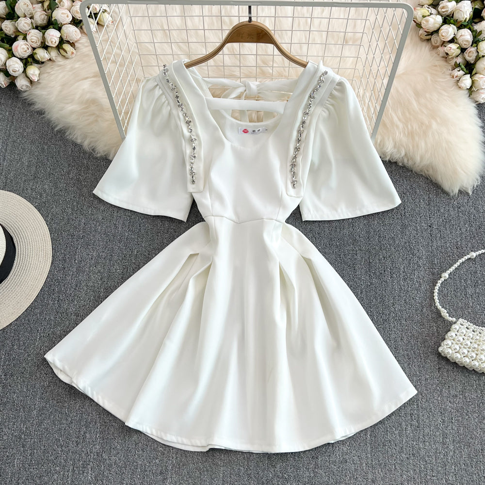Robe courte trapèze à manches bouffantes et diamants, taille fine, 11096