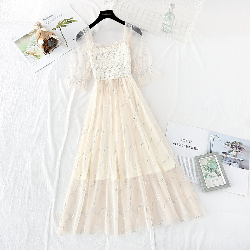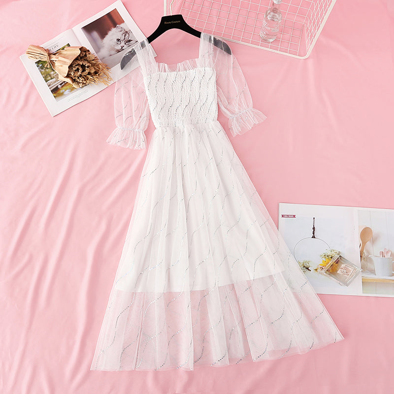 La nouvelle série de super fées est une jupe longue en filet mince et douce 4627