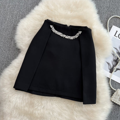 Jupe portefeuille polyvalente à imprimé diamants, coupe trapèze, 11289