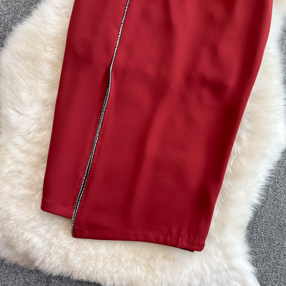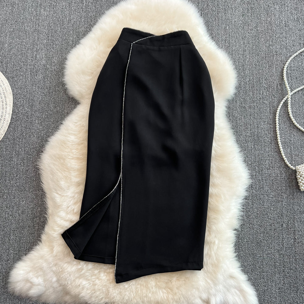 Jupe portefeuille slim taille haute polyvalente, jupe fendue mi-longue en une étape 11284
