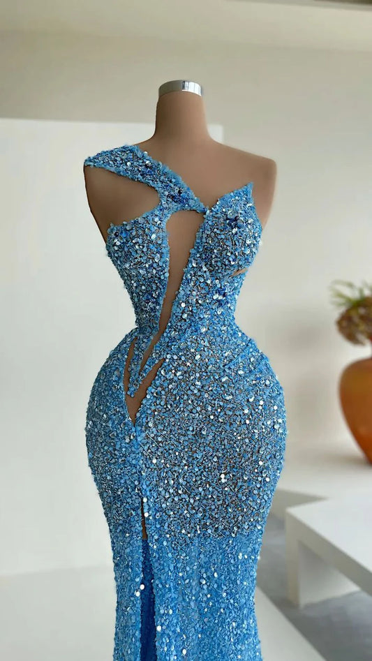 Robe de soirée sirène élégante à paillettes bleu magnifique et brillante gh3387