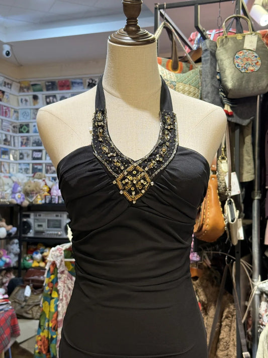 Robe de soirée longue en mousseline de soie noire élégante, robe de fête d'anniversaire, robe de bal gh4280