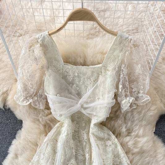 Robe à manches bouffantes avec jupe féerique en maille de tempérament 3332