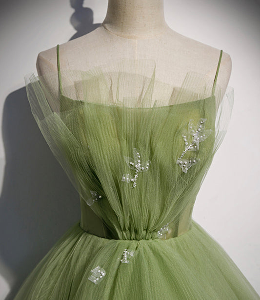 Robe de soirée simple en tulle vert clair, robe de bal longue verte gh5