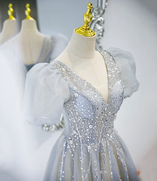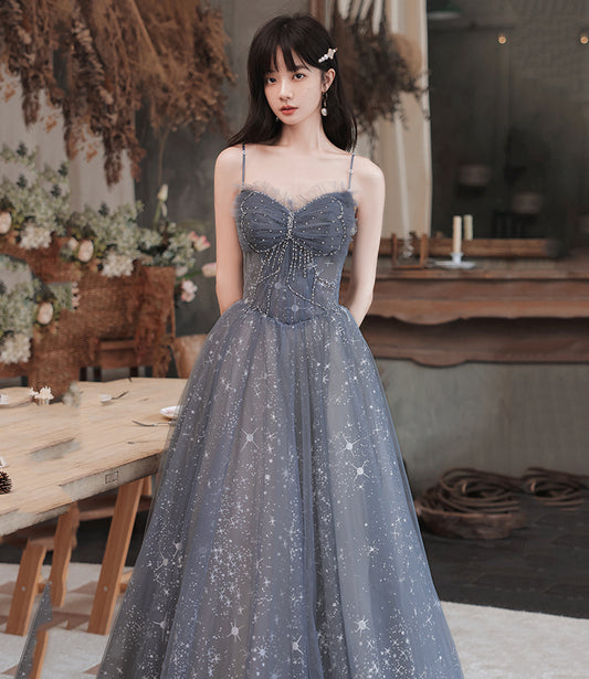 Robe de soirée longue en tulle gris Robe de soirée trapèze 10489