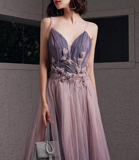 Robe de soirée longue en tulle violet à paillettes Robe de soirée trapèze 10480