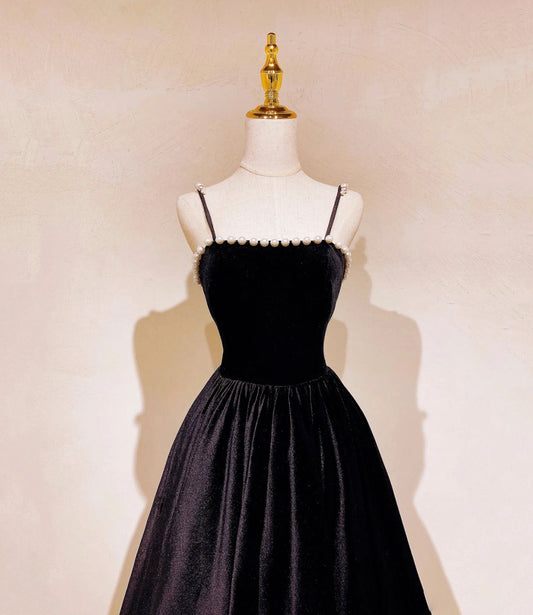 Robe de soirée longue en velours noir Robe de soirée trapèze 10482