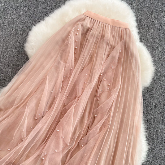 Jupe en maille à perles irrégulières à taille élastique super fée 11286