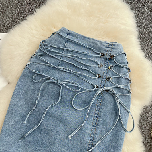 Jupe taille haute à bandage de conception minoritaire coréenne 5829