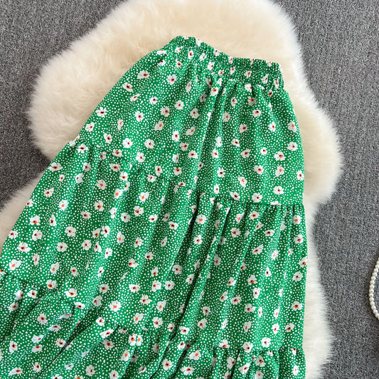 Jupe florale à volants taille haute, fine, moyenne et longue, de nouveau style 11285