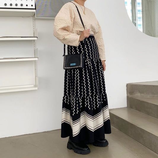 Nouvelle jupe, jupe à imprimé pois rétro cousue, jupe longue taille haute à motif ondulé 3678