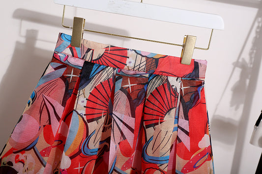 Jupe d'été, jupe trapèze à imprimé cœur, jupe parapluie midi drapée en coton 3676