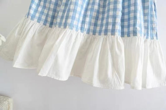 Jupe trapèze à volants à carreaux bleu clair, jupe d'été taille haute pour étudiantes 3575