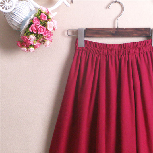 Jupe mi-longue en coton et lin, jupe littéraire bordeaux, jupe midi 3578