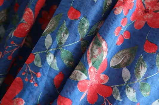 Nouveau style, coton et lin, petite jupe plissée fraîche en coupe A, jupe fleurie 3584