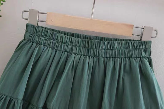 Jupe en coton et lin, jupe plissée taille haute, jupe à volants épissés 3580