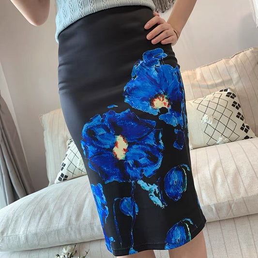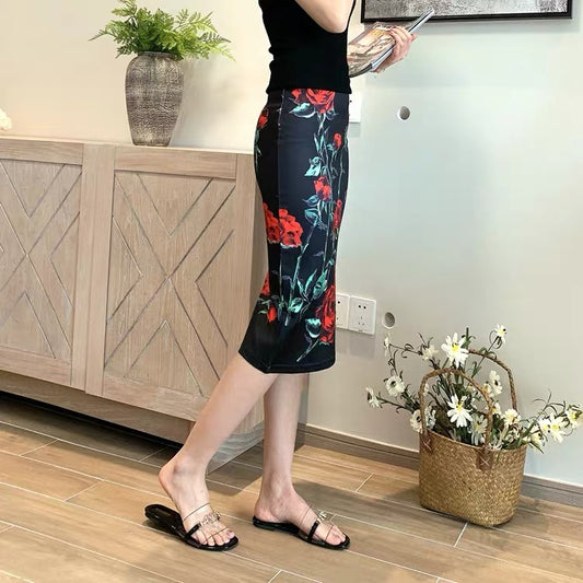 Printemps et été, nouveau style, jupe taille haute, jupe midi fendue, élégante jupe moulante imprimée 3537