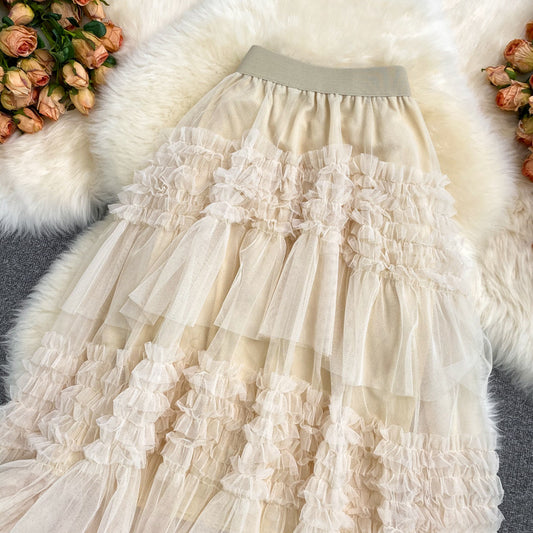 Jupe en tulle à clous, automne et hiver, nouveau style, taille haute, longueur moyenne, polyvalente, jupe super féerique A-line 3526