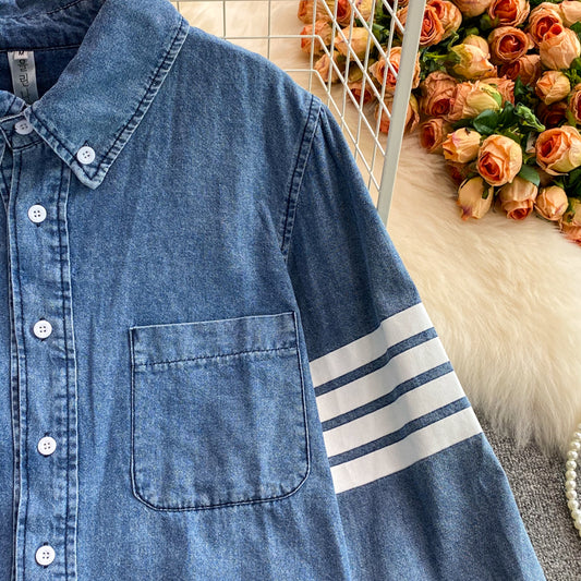 Manteau chemise ample mi-long en denim pour femme, version coréenne 1687