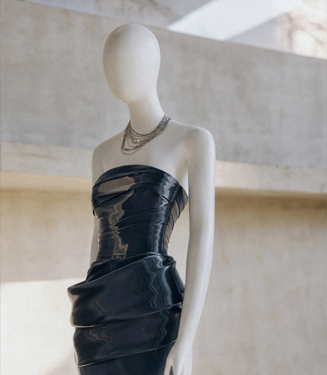 Robe de soirée longue en satin Y3K style gothique cybermécanique bleu métal liquide déesse gh4545