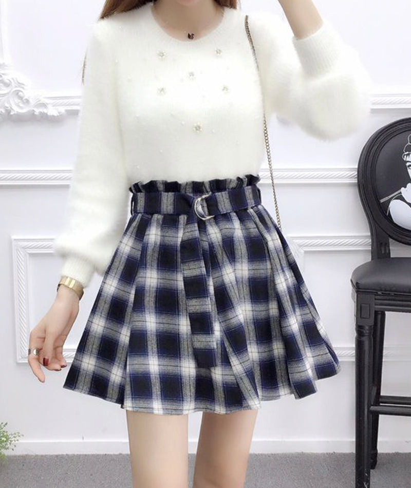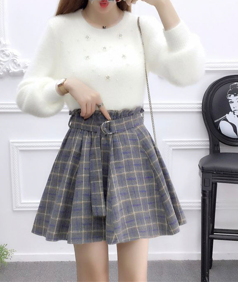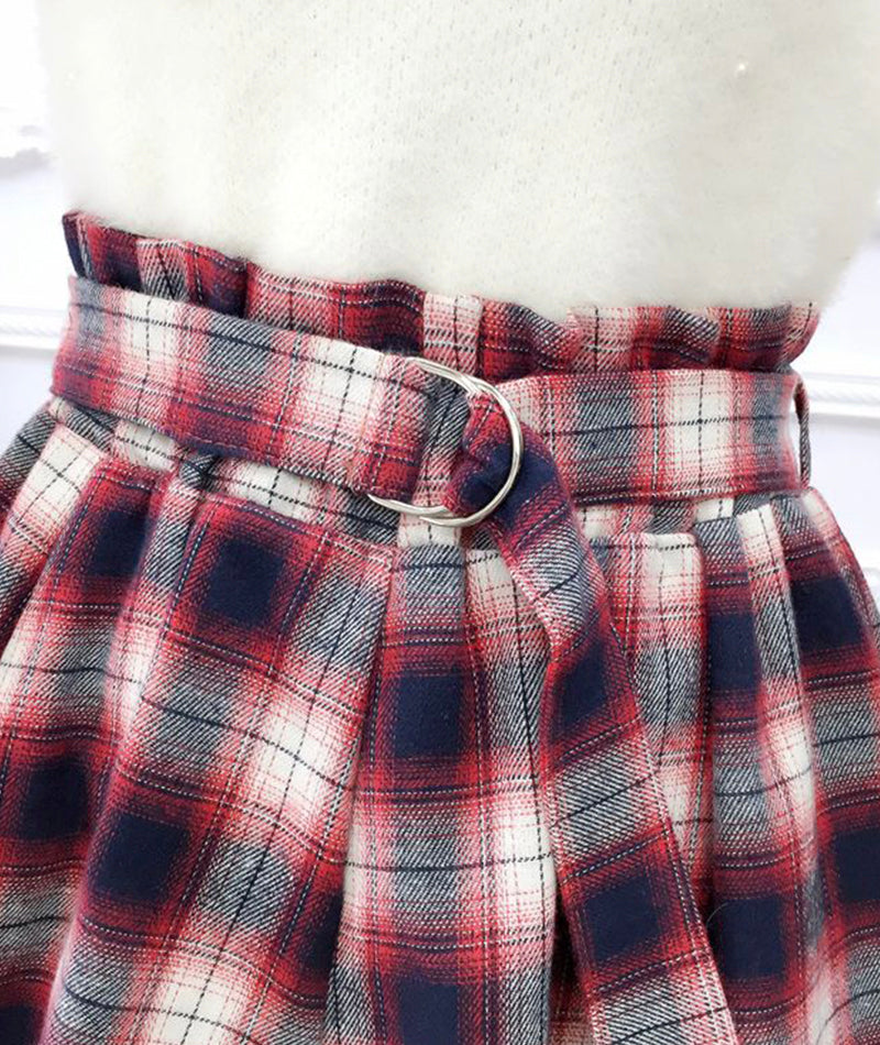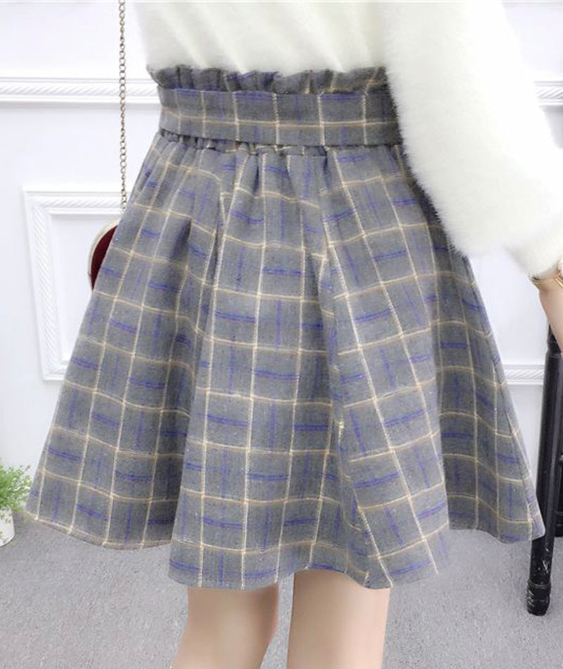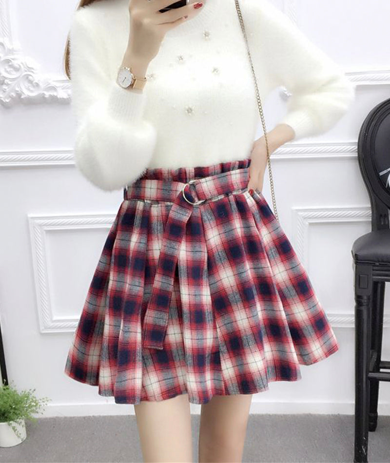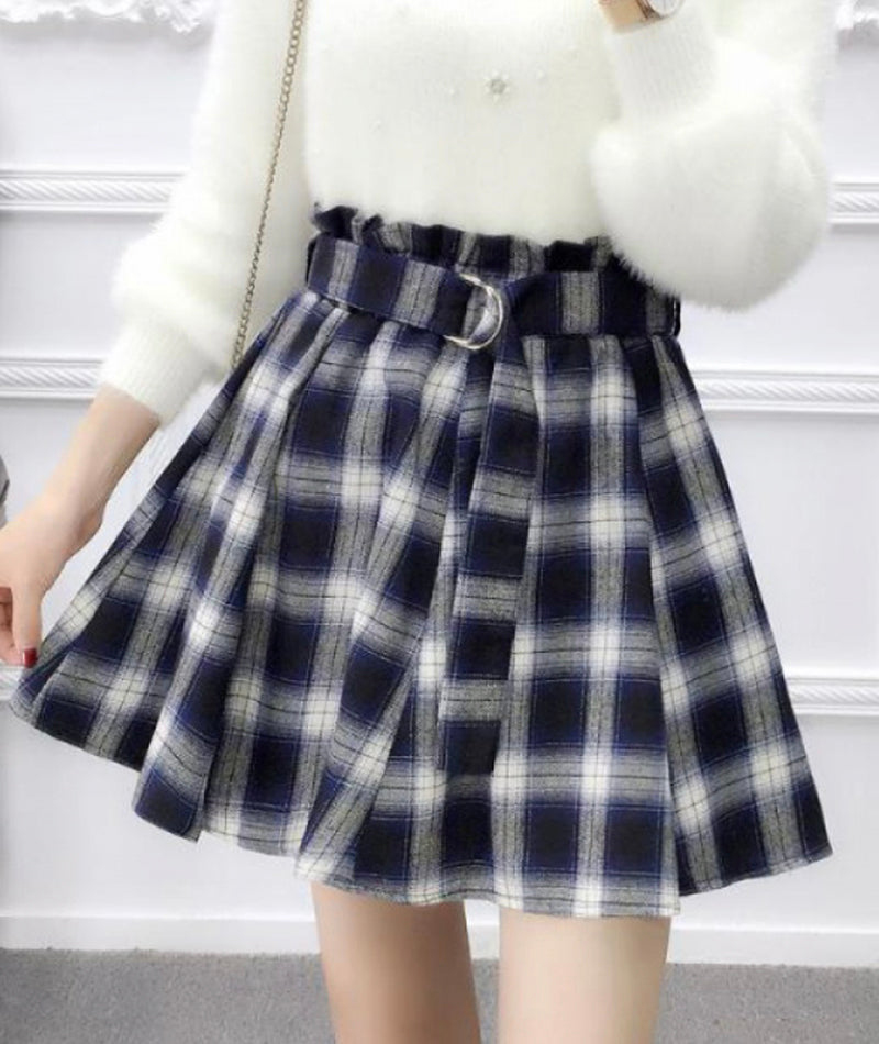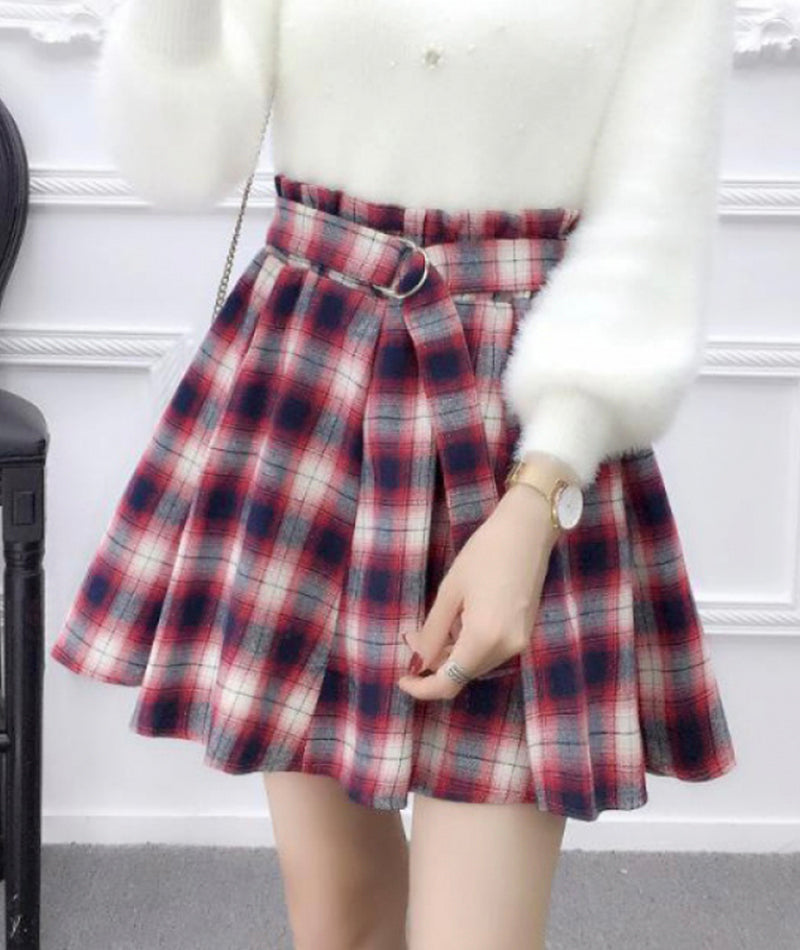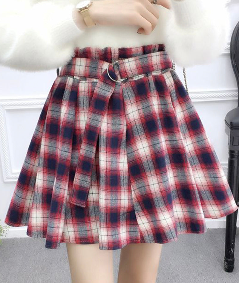 Jupe plissée trapèze mignonne à carreaux 3480