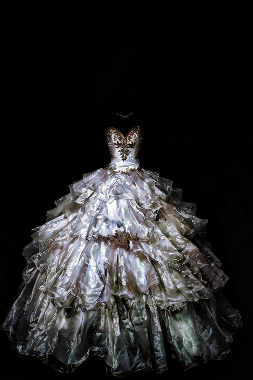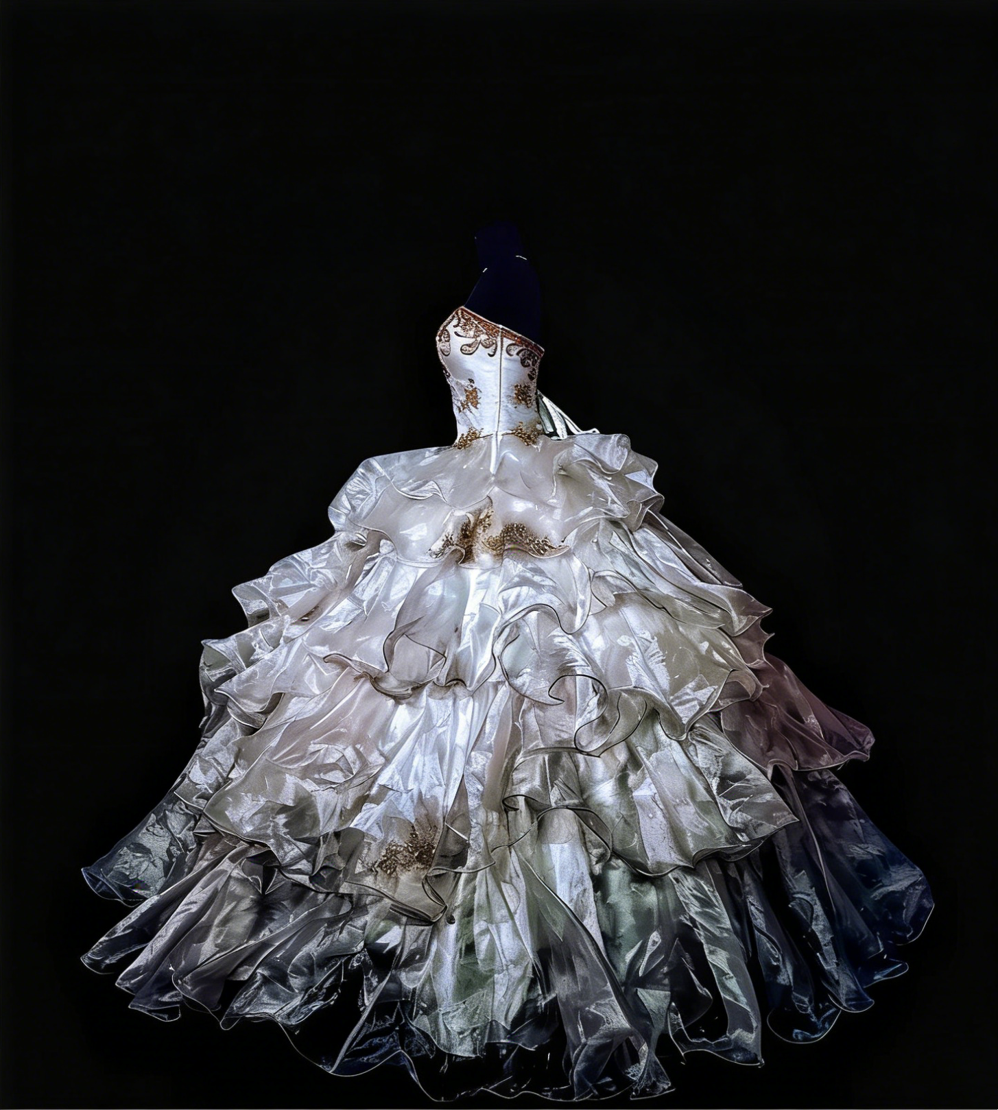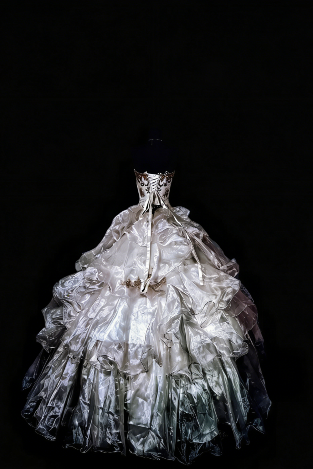 Robe de bal bustier dégradé argent-gris irisé style cour - Robe de soirée à thème rétro gh6568