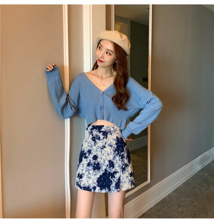 Jupe de peinture à l'huile, nouveau style, taille haute, jupe courte, jupe fesse, jupe trapèze fendue 3558