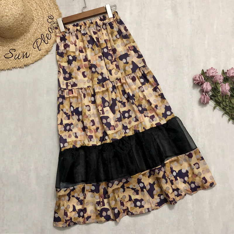 jupe en gaze à imprimé pois avec maille drapée 3688