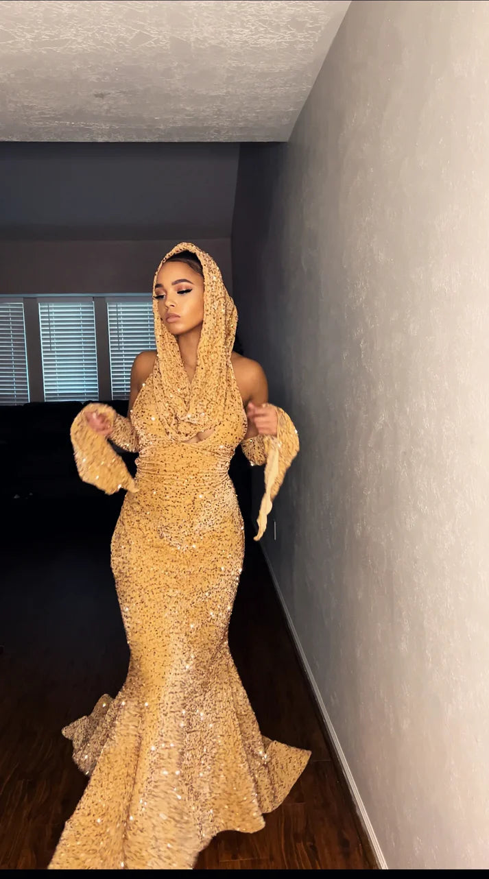 Robe de soirée longue moulante rouge brillante et sexy à paillettes avec col en V gh3414