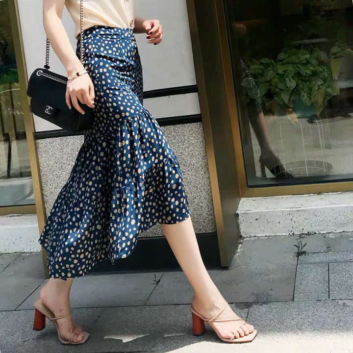 Jupe sirène taille haute à imprimé romantique et à pois irréguliers 3639