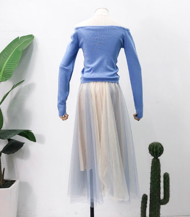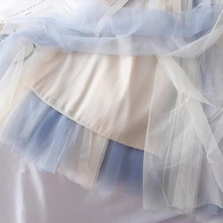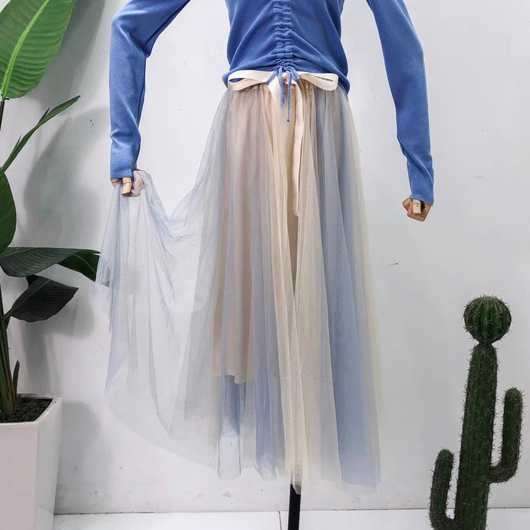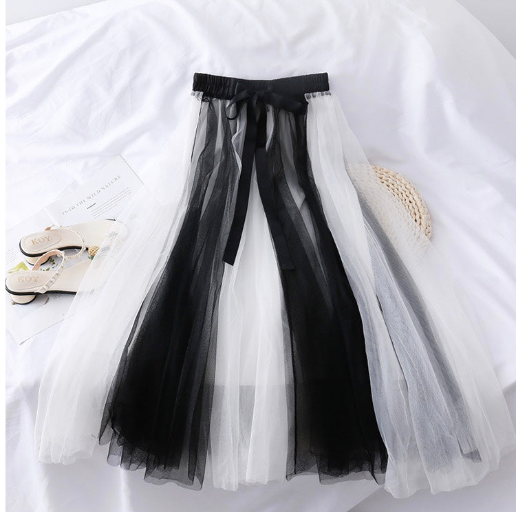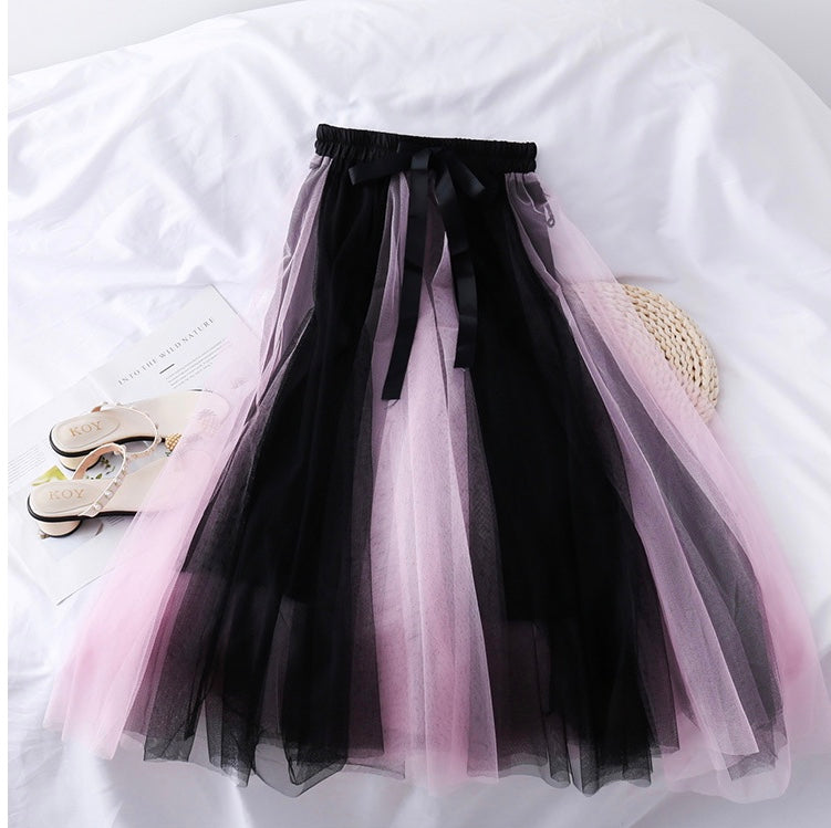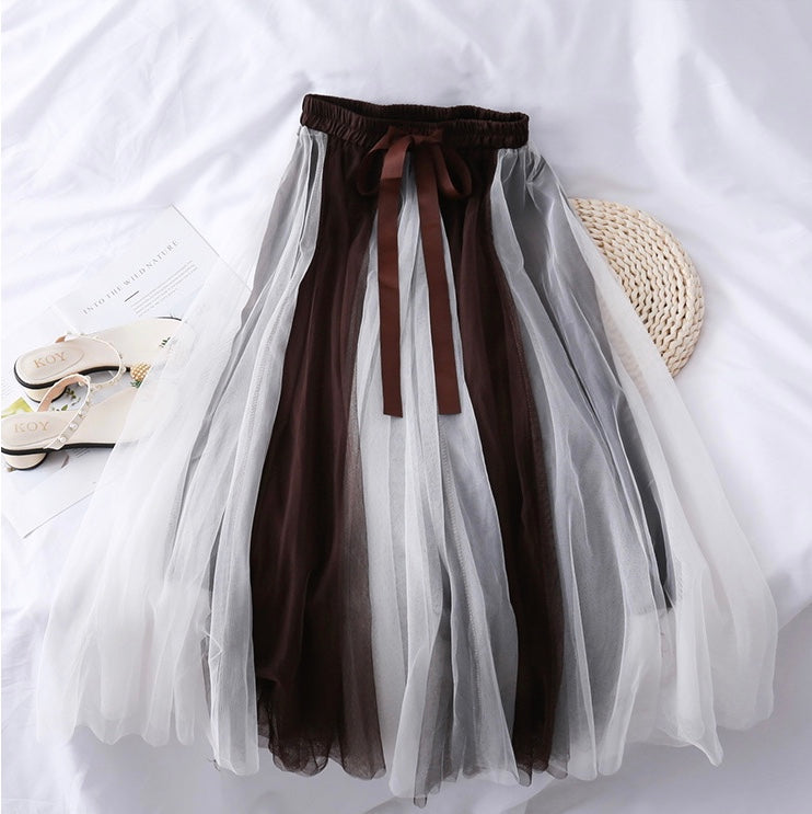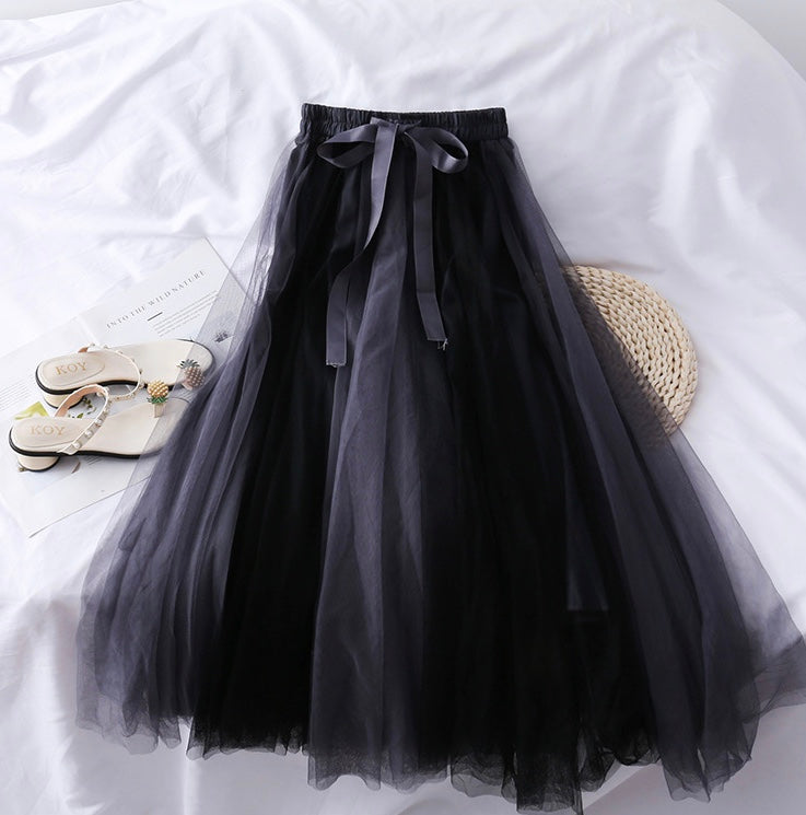 Jupe bouffante taille haute en maille fine, nœud papillon, super fée, jupe mi-longue assortie aux couleurs 3601