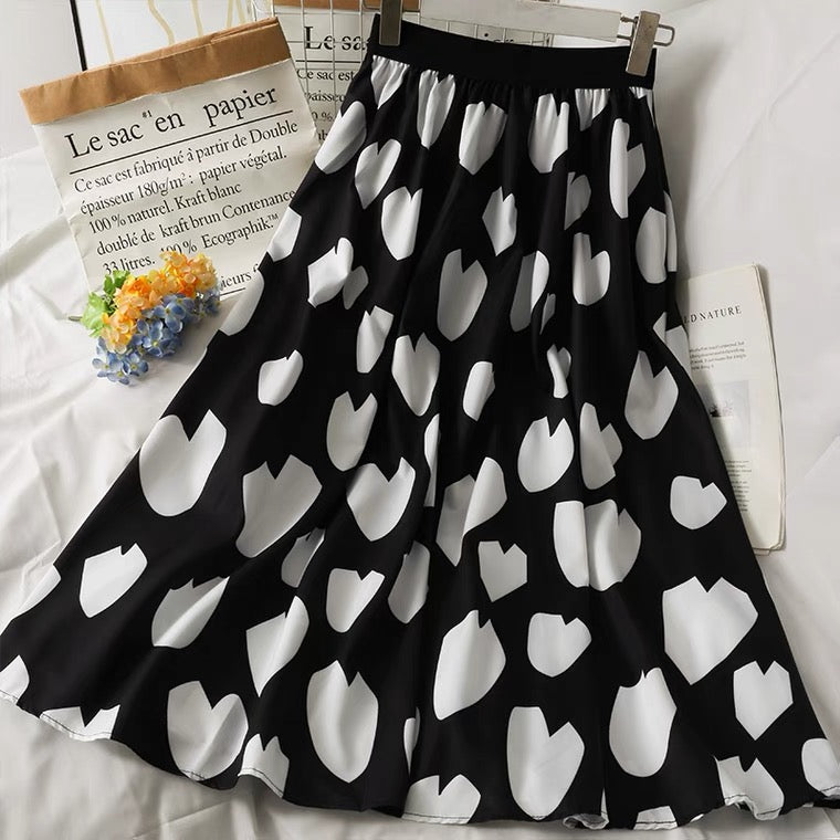 Jupe mi-longue à imprimé coeur, vent doux, jupe trapèze fine taille haute 3595
