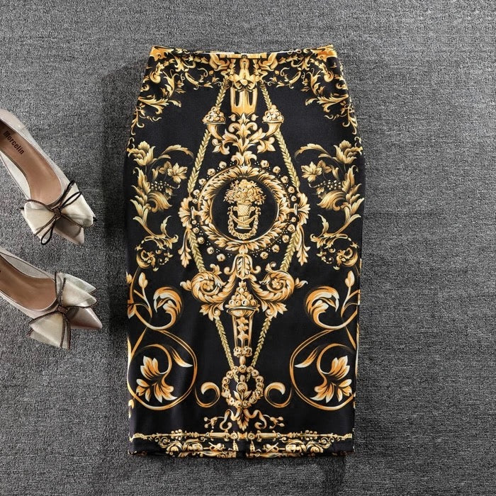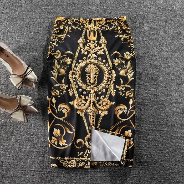 Robe Boydon à imprimé vintage, jupe fendue slim mode femme 3541